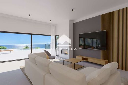 Nieuw gebouwd en opgeleverd in 2027. Sleutelklaar! Deze prachtige villa (R1-06) is een van de designervilla’s van Urbanisatie Valdemar in La Herradura, dat deel uitmaakt van de prachtige Costa Tropical van Granada. De villa zal een zuidwestelijke oriëntatie hebben met uitzicht op zee en de prachtige zonsondergangen. De villa ligt op loopafstand van het strand en restaurants van het dorpje La Herradura. De locatie is ideaal aangezien het slechts 5 minuten rijden is naar de jachthaven Marina del Este, 15 minuten naar Nerja, 45 minuten naar de luchthaven van Malaga en 90 minuten naar de skipistes van Sierra Nevada. De villa bestaat uit twee verdiepingen. De hoofdingang is op de bovenste verdieping waar een dubbele parkeerplaats is. Er zijn 3 slaapkamers op de bovenverdieping, allemaal met eigen badkamer, spectaculair uitzicht op zee en inbouwkasten. Op de begane grond is er een grote, open woonkamer met een designerkeuken en een en-suite slaapkamer. Daarnaast is er op deze verdieping een gastentoilet, bijkeuken en buitentoilet. Een groot terras geeft toegang tot een overloopzwembad van 10 meter lang met prachtig uitzicht op de zee en de baai van La Herradura. Er is ook een tuin. Direct onder het zwembad, via de trap/lift, is er een berging en een garage voor één auto. In de prijs zit het volgende inbegrepen: • het overloopzwembad• een volledig ingerichte keuken met premium apparatuur• luxe ingerichte badkamers inclusief glazen douchewanden• inbouwkasten• centrale airconditioning (warm & koud)• een aerothermische oplossing voor sanitair warm water• een volledige zonnepaneel-installatie• een lift• domotica en een video-intercomsysteem• garage voor 1 auto met een automatische deur Deze nieuwe woonwijk “Urbanización Valdemar” in La Herradura is een luxueuze verzameling unieke en moderne villa’s waar elk huis zijn eigen ontwerp heeft en gebouwd is om het fantastische uitzicht op de zee, zonsondergangen en het natuurpark Cerro Gordo-Maro optimaal te benutten. De villa’s zijn ruim en comfortabel, hebben een uitstekend energielabel en zijn milieuvriendelijk. Ze zijn uitgerust met geavanceerde technologie zoals zonnepanelen en domotica. Als u een villa reserveert tijdens de beginfase van de bouw heeft u de mogelijkheid om deze naar eigen smaak aan te passen en zo een huis te creëren dat uw eigen stijl en voorkeuren weerspiegelt. Deze nieuwbouwvilla is exclusief te koop bij Cumbre Villas. Bezoek onze website voor meer details, een overzicht van alle prachtige villa’s in het project en voor het aanvragen van plattegronden. Wij zijn er om u te helpen bij de aankoop van uw volgende droomvilla aan de Costa Tropical!