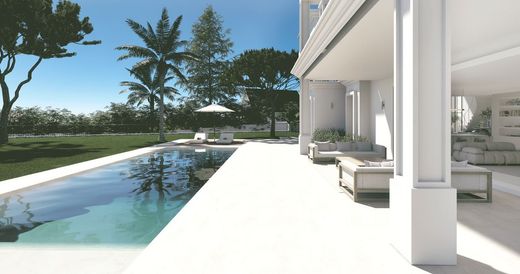 Exclusieve luxe villa met panoramisch uitzicht op zee en de golfbaan in El Paraíso, Estepona. Ontdek een unieke kans om eigenaar te worden van een klassiek en modern architectonisch meesterwerk in de prestigieuze wijk El Paraíso Alto. Gelegen in de Gouden Driehoek van de Costa del Sol, biedt deze villa een prachtig uitzicht op zee, de golfbanen, Gibraltar en de Afrikaanse kustlijn. De villa combineert privacy, elegantie en de nabijheid van golfbanen van wereldklasse, stranden en voorzieningen. Gelegen op een perceel van 2700 m², met 860 m² binnenruimte en 498 m² terras, beschikt deze uitzonderlijke villa over een overdekte veranda van 91 m² en een perfecte mix van binnen- en buitenruimtes. Het ontwerp van de villa omvat een ruime woonkamer met een verbinding naar de veranda, een eethoek en een ultramoderne keuken met directe toegang tot een barbecueplek in de buitenlucht. Gemaakt met materialen van de hoogste kwaliteit, is elk detail van deze woning zorgvuldig ontworpen om verfijning en elegantie uit te stralen. De aangelegde tuinen, ontworpen door een gerenommeerd expert, hebben een mediterrane uitstraling en een zoutwaterzwembad met geleidelijke inloop. Een houten gastenverblijf van 160 m² met twee slaapkamers, twee badkamers, een keuken, een woonkamer en een buitenjacuzzi biedt een privé-retraite met onafhankelijke toegang vanaf de straat. Deze villa beslaat drie verdiepingen plus een solarium op het dak, verbonden door een moderne lift en een elegante trap. Hoogtepunten zijn onder andere: zes luxe slaapkamers, waaronder een grote master suite met inbouwkasten en spa-achtige badkamers; een fitnessruimte met een infraroodsauna en een bioscoopzaal voor ontspanning en wellness; en een lichte kelderstudio met een keuken, woonkamer en speelruimte, versterkt door een Engelse binnenplaats met een prachtige boom. Geavanceerde technologie en energiezuinigheid. De villa is uitgerust met een domoticasysteem en omvat pre-installatie voor zonnepanelen en een jacuzzi. Een luchtthermisch systeem zorgt voor vloerverwarming en -koeling, wat zorgt voor energiezuinigheid en comfort het hele jaar door. Een zeldzame kans om uw droomhuis te personaliseren: met de verwachte oplevering in april 2025 kunnen kopers geselecteerde functies aanpassen aan hun voorkeuren. Dit is meer dan een huis; Het is een statement van verfijnd wonen in een van de meest prestigieuze gemeenschappen aan de Costa del Sol. Neem contact met ons op voor een privébezichtiging en omarm de buitengewone levensstijl die dit magnifieke pand biedt.