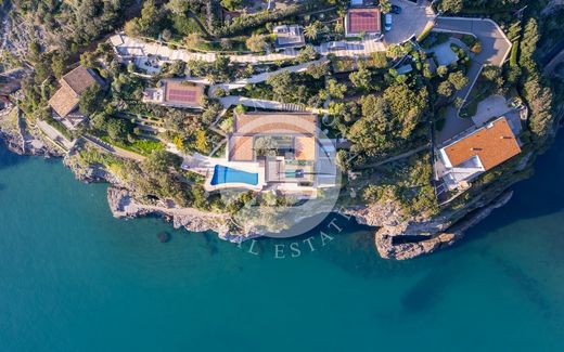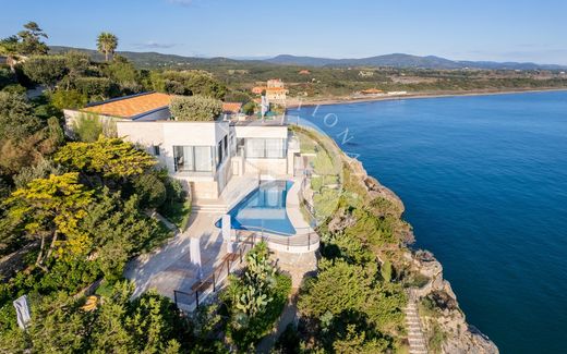 Dit luxe landgoedcomplex aan het water ligt in een prestigieus gebied dat bekendstaat om zijn uitzonderlijke milieu- en landschappelijke waarde. Het ligt dramatisch op de klif van het Ansedonia-voorgebergte en biedt een ongeëvenaard uitzicht op de zee, direct tegenover Monte Argentario. Dit prestigieuze landgoed beslaat ongeveer 6.000 m² en bestaat uit vijf afzonderlijke wooneenheden, elk met zijn eigen unieke charme. Het complex biedt een onbelemmerd uitzicht op de open zee, met directe toegang via 2 privé-afdalingen naar het water: een brede afdaling naar de Villa Patio en een meer intieme afdaling naar het bijgebouw, La Cuccia. Het panoramische uitzicht omvat niet alleen de uitgestrekte zee, maar legt ook de schoonheid van Tagliata Beach en het glooiende landschap vast. Grote ramen aan de zeezijde van Villa Il Patio creëren een adembenemende fusie tussen binnen en buiten, met ononderbroken uitzichten op de spectaculaire omgeving. Het pand omvat: • Hoofdvilla Il Patio Het kroonjuweel van het landgoed, deze villa van 447 m² (exclusief buitenruimtes) heeft een unieke indeling die zowel luxe als panoramische uitzichten maximaliseert. • Bijgebouw van de villa - La Cuccia Ongeveer 175 m², ligt aan het einde van de privéweg van het landgoed en biedt een adembenemend uitzicht over de oude Etruskische Tagliata en de zee daarachter. • Het pension Dit pension van 74 m² beschikt over een woonkamer met kitchenette, een hal, een slaapkamer met een eigen badkamer en een terras van 124 m² - perfect om bezoekers te ontvangen of een privéretraite te creëren. • Twee poortgebouwen Deze volledig gerenoveerde poortgebouwen liggen net voorbij de hoofdingangspoort, vlak bij een ruime binnenplaats die dienstdoet als parkeerplaats en manoeuvreerruimte. Een complete en meesterlijke renovatie, geleid door de beroemde architect Enrico Gobbi en zijn team in Venetië, werd uitgevoerd tussen 2016 en 2020. Deze transformatie, waarbij de oorspronkelijke voetafdruk van de gebouwen behouden bleef, heeft een verbluffende nieuwe architectonische visie geïntroduceerd. De buitenkant is opnieuw ontworpen, met ruwe travertijnstenen gevels, terwijl de binnenkant zorgvuldig is vervaardigd met hoogwaardige materialen zoals marmer en hout, waardoor luxe naadloos samengaat met verfijning. Op maat ontworpen meubels, ingewikkelde houten lambrisering en alle aandacht voor detail dragen bij aan de verheven esthetiek.