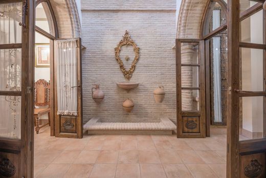 Drie verdiepingen tellend huis met kelder en lift op een rustige locatie. Dit herenhuis van 240 vierkante meter is verdeeld over drie verdiepingen en een semi-kelder. Het heeft een functioneel ontwerp en biedt ruime en lichte ruimtes, waaronder een kelder met een gitaarvormige bar en een lift die alle verdiepingen met elkaar verbindt, voor comfort en toegankelijkheid. Op de begane grond bevinden zich de hoofdingang, een woon-/eetkamer, een aparte keuken, een woonkamer met toegang tot de trap en een toilet. Op de eerste verdieping bevinden zich een hoofdslaapkamer, een slaapkamer met badkamer en suite en een kleedkamer, die kan worden omgebouwd tot een extra kamer. Op de tweede verdieping heeft een slaapkamer met badkamer en suite directe toegang tot een groot dakterras, ideaal om van het buitenleven te genieten. Naast de kelder bevindt zich in de semi-kelder een woonkamer met een bank en televisie, en een kamer die momenteel als atelier wordt gebruikt. Hoogtepunten: vloerverwarming, dakterras, zonnepanelen, ambachtelijke tegels en houtsnijwerk, een combinatie van moderniteit en traditionele stijl. Ligging: Op slechts vijftien minuten van Tomares en vijfentwintig minuten van Sevilla, in een rustige omgeving dicht bij een breed scala aan recreatie- en eetgelegenheden. Een uitstekende keuze voor wie op zoek is naar kwaliteit van leven en comfort.