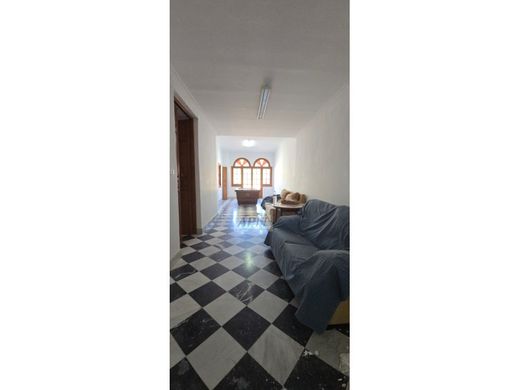 Het hoofdgebouw, met uitzicht op het centrale stadsplein, wordt betreden via een klassieke Andalusische vestibule. Vanaf hier stap je door de dubbele deuren het woongedeelte binnen. De originele geblokte vloeren geven de ruimte een authentieke charme. Je vindt hier een klein kantoor of studeerkamer en verder een enorme open woonkamer met een gezellige open haard. De aangrenzende, volledig uitgeruste keuken biedt toegang tot het eerste terras, dat ook vanuit de woonkamer bereikbaar is.