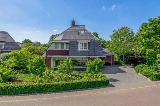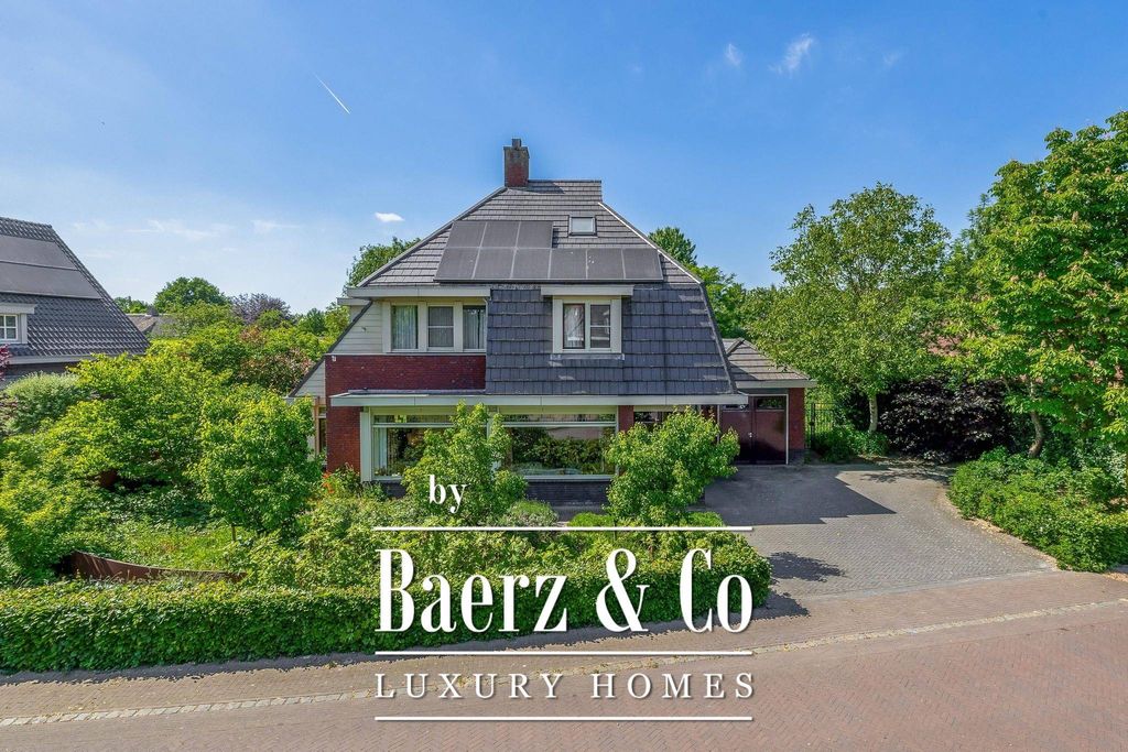 Vanuit de ontvangsthal kom je in de zeer ruime woonkamer, een heerlijke plek om te vertoeven. Deze is verdeeld in een studeerwerk/tv-hoek en een royale zithoek met een houtkachel. De grote eetruimte grenst aan de tuinzijde en heeft een schuifpui naar de achtertuin en het overdekte terras. Dankzij de grote glaspartijen, de erker aan de voorzijde met daarbij glas-in-lood in het bovenste gedeelte van de ramen bij de woonkamer, is er veel lichtinval.