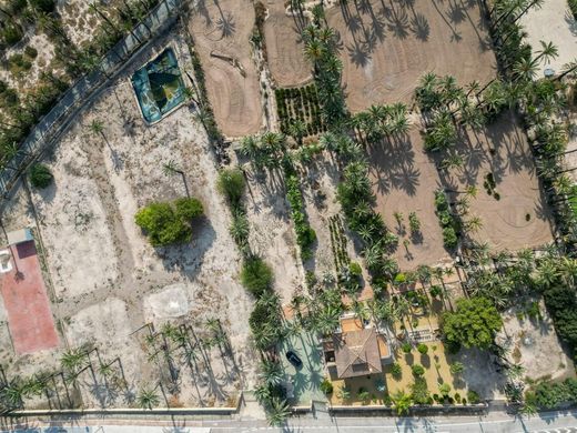 Vrijstaande villa in Partida de Alzabares Bajo - Elche Bebouwde oppervlakte: 250 m² | Perceel: 12.000 m² | 5 slaapkamers | 3 badkamers | Gemeubileerd Deze spectaculaire vrijstaande villa ligt in een van de meest gewilde gebieden op het platteland van Elche, in het rustige en goed verbonden Partida de Alzabares Bajo, en biedt de perfecte combinatie van ruimte, privacy en een natuurlijke omgeving, allemaal dicht bij de stad. Gelegen op een uitgebreid perceel van 12.000 m², biedt de woning een uitstekende kwaliteit van leven, omringd door de natuur en 350 dadelpalmen, die een aanzienlijke landschappelijke waarde toevoegen. De woning van 250 m² is verdeeld over twee comfortabele verdiepingen en beschikt over: 5 ruime slaapkamers, allemaal met ingebouwde kasten. De hoofdslaapkamer heeft een en-suite badkamer en een privéterras met open uitzicht op de tuin en de natuurlijke omgeving. In totaal 3 volledige badkamers, perfect verdeeld om het hele pand te bedienen. Een grote woon-/eetkamer met open haard en directe toegang tot diverse terrassen, ideaal om het hele jaar door te genieten van het mediterrane klimaat. Een aparte, volledig uitgeruste keuken met toegang tot een functionele patio. Centrale verwarming op diesel met radiatoren zorgt voor comfort tijdens de koudere maanden. Terrazzovloeren in de gemeenschappelijke ruimtes en parketvloeren in de slaapkamers combineren duurzaamheid met warmte. Een overdekte garage met ruimte voor meerdere voertuigen en een schaduwrijke parkeerplaats. Diverse terrassen en overdekte veranda's, perfect voor het creëren van ontspanningsruimtes, buiteneetruimtes of chill-out zones. De woning wordt volledig gemeubileerd verkocht, is instapklaar en is ook ideaal als tweede woning, landelijke accommodatie of een investering met een hoog rendement. Dankzij de natuurlijke omgeving, de royale afmetingen en de voorzieningen is het perfect voor grote gezinnen, natuurliefhebbers of ondernemers in de agrotoeristische of agrarische sector. Toplocatie. Op slechts enkele minuten van het centrum van Elche, met gemakkelijke toegang tot voorzieningen, scholen en gezondheidscentra, en op korte rijafstand van de luchthaven en de stranden van de Costa Blanca.