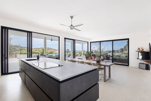De villa is ontworpen met een open indeling en grote raampartijen die zorgen voor een lichte, luchtige sfeer en panoramische vergezichten. De ruime woonkamer, eetkamer en moderne keuken sluiten naadloos aan op de overdekte terrassen en het buitenterrein. De keuken is volledig uitgerust met hoogwaardige apparatuur en daardoor ideaal om gasten te ontvangen.