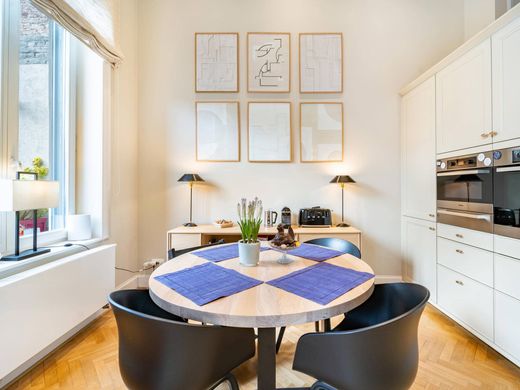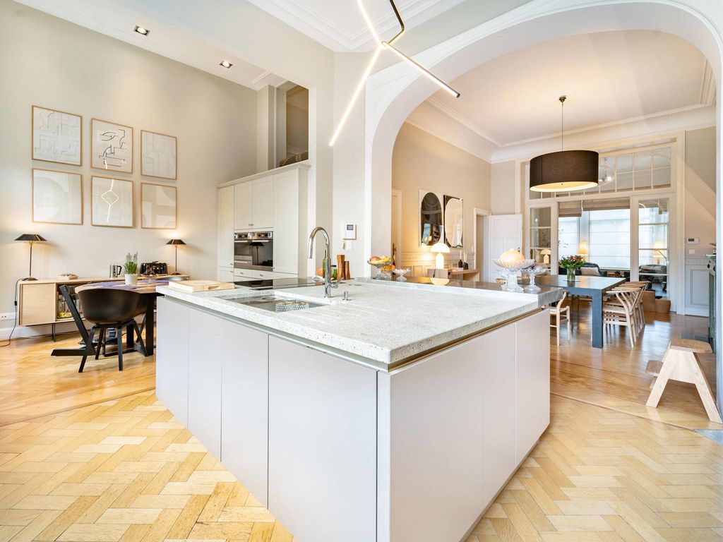 Op Molièrelaan tussen Brugmannplein en Albertlaan, volledig gerenoveerd herenhuis dat zijn charme en historische kenmerken heeft behouden. Het biedt zes slaapkamers (momenteel vier slaapkamers, een bureau en een thuisbioscoopruimte), voor een oppervlakte van ± 480 m². De woning bestaat op het gelijkvloers uit een inkomhal met vestiaire en gastentoiletten, recepties met open haard, eetkamer, open "Siematic" keuken en ontbijtruimte met toegang tot het terras en de tuin op het zuid/oosten. Op de eerste verdieping een hoofdslaapkamer met kleedkamer en en-suite douchekamer en een tweede slaapkamer met badkamer. Op de tweede verdieping, een kantoor, een derde slaapkamer met en-suite badkamer en terras. Op de derde en laatste verdieping is de zolder verbouwd tot speelkamer/kantoor. Het huis bestaat op de benedenverdieping uit een wasruimte, serviceappartement met een slaapkamer en een doucheruimte, toegang tot de tuin, stookruimte, werkplaats, wijnkelder, Engelse binnenplaats evenals een garage en zijn oprit. . Anderen: parket, alarm, kelders onder het hele huis, verwarming op gas. Molièrelaan is een van de mooiste lanen van Brussel. Begiftigd met prachtige herenhuizen, is het groen, weids en aangenaam om in te wonen. Het is gelegen in een rustige omgeving dicht bij restaurants en kleine winkels. Voor meer informatie kunt u contact opnemen met Bertrand de Moffarts op +32 475 944 508