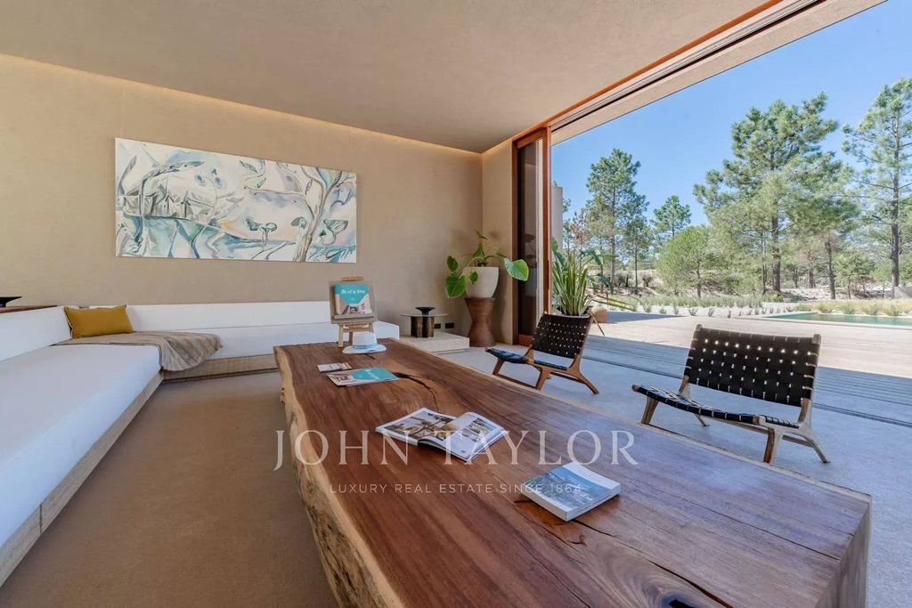 De woning beschikt over vier ruime en-suite slaapkamers, elk met een eigen houten dek, en twee woonkamers met prachtig uitzicht. De ene kijkt uit op het zwembad van 96 m² en de andere op rustige dennenbossen en de natuurlijke schoonheid van Comporta. Het ontwerp van de villa omarmt het binnen-buitenleven, met een grote, volledig uitgeruste keuken, bijkeuken en voldoende opslagruimte.