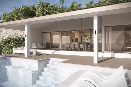 Gelegen op een verhoogd perceel van 1.326 m² in de prestigieuze, beveiligde gemeenschap Coral Estate , bevindt zich Villa 2104 – een eigentijdse gelijkvloerse woning waar moderne architectuur en natuurlijke elegantie samenkomen. Ontworpen door het bekroonde architectenteam STATE of Architecture , combineert deze nieuwbouwwoning een verfijnde stijl met het ontspannen ritme van het Caribische kustleven.