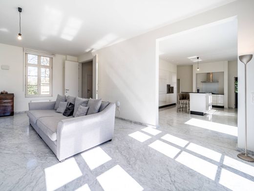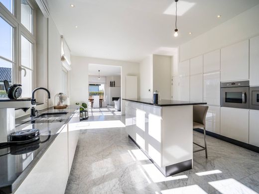 Gelegen in een groene omgeving, villa met 5 slaapkamers met een bewoonbare oppervlakte van ± 470 m² en zuid georiënteerde tuin, op een perceel van 18 are. De woning bestaat uit een royale inkomhal met gastentoilet die toegang biedt tot een afzonderlijke bureauruimte. Langs de andere zijde bevindt zich de lichtrijke leefruimte met gashaard die uitgeeft op de volledig geïnstalleerde open keuken met eiland. Deze kijken uit op de ruime, zuid georiënteerde en volledig omheinde tuin met een wijd uitzicht over de velden. De bijkeuken, met voorzieningen voor was- en droogkast, biedt toegang tot het overdekte terras met haard. Op de eerste verdieping bevinden zich 3 slaapkamers met elk hun eigen badkamer. Daarvan is de master bedroom voorzien van inloopdressing met ingemaakte kasten en biedt deze een ruime badkamer met zowel douche als ligbad. Op de tweede verdieping bevindt zich een studio met slaapgedeelte, open keuken, woonkamer en berging, en een slaapkamer met badkamer, ideaal voor bijvoorbeeld een au pair. Aanvullend: Automatische toegangspoort, alarmsysteem aanwezig. Ruime, droge kelder met ingemaakte kasten. Beschikbaar vanaf 31 januari 2026. Het eigendom is gelegen in de gemeente Berlaar, in een groene en residentiële omgeving, vlakbij de stad Lier. Winkels, horeca en recreatiemogelijkheden in de nabijheid. Voor meer informatie, gelieve contact op te nemen met ons kantoor op +32 3 647 30 72.