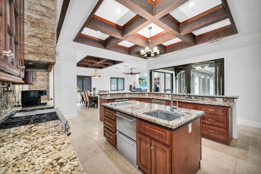 Welkom op uw privélandgoed in Naples, een afgelegen en uitzonderlijk uniek complex van 4,6 hectare met een westelijke ligging, ongeëvenaard comfort en een unieke indeling voor meerdere woningen zonder VvE-beperkingen of -kosten. Ideaal gelegen vlak bij Golden Gate Parkway, nabij Livingston, beschikt dit afgesloten terrein over een statig hoofdgebouw met zes slaapkamers en 5,5 badkamers, twee aparte gastenappartementen met één slaapkamer en één badkamer en een kitchenette, een aparte fitnessruimte en een resort-geïnspireerd buitenleven rond een indrukwekkende binnenplaats. Een zeldzame, met marmer afgewerkte oprit verbindt de privé-ingang, slagvaste deuren en ramen, een nieuwer HVAC-systeem, een generator voor het hele huis, een ondergrondse propaantank en een tankloze boiler voor het hele huis die eindeloos warm water levert om het comfort, de efficiëntie en de luxe van dit landgoed te benadrukken. In het hoofdgebouw loopt een marmeren vloer door de woonruimtes, met warme houten vloeren in de slaapkamers en tegels in de badkamers. Op maat gemaakte cassetteplafonds, openslaande deuren, een open haard en een surroundsysteem voor het hele huis verhogen de woonervaring nog verder. Vier slaapkamers bevinden zich aan de voorzijde van de woning, terwijl de hoofdslaapkamer en de zesde slaapkamer genieten van een rustige omgeving aan de achterzijde. Ruime glazen deuren openen naar de binnenplaats, waardoor een naadloze binnen-buitenruimte ontstaat, ideaal voor dagelijks comfort en entertainment. De keuken van de chef-kok is uitzonderlijk goed ontworpen met gas- en elektrische apparaten, granieten aanrechtbladen en spatwand, een accentmuur van gestapelde stenen, een extra groot kookeiland met spoelbak, een ingebouwde spoelbak, roestvrijstalen apparatuur, waaronder een gasfornuis met potvuller, een inbouwoven, een ingebouwde magnetron, gekoelde lades, een wijnkoeler, een koel-vriescombinatie en een nieuwere vaatwasser. De hoofdbadkamer beschikt over een ingebouwde massagetafel, een ligbad, dubbele wastafels met een make-uptafel en een luxe inloopdouche met vijf douchekoppen. Twee gastenkamers hebben een eigen badkamer, en een toilet en een buitenbad bedienen de belangrijkste woon- en binnenplaatsgedeeltes. De prachtige afgeschermde binnenplaats is ontworpen voor het hele jaar door plezier met een verwarmd zwembad, een omheining van gras en travertijn en een overdekte buitenruimte met plafondventilatoren. De complete buitenkeuken is voorzien van een Argentijnse grill, kookplaat en bakplaat, frituurpan, koelkast, bar en granieten aanrechtbladen met bijpassende spatwand, ideaal voor feestjes op elke schaal. Achter de binnenplaats verandert de achtertuin in een privépark met een rustige vijver, een charmante brug, fruitbomen en diverse plekken om rustig te ontspannen. Een apart gebouw met apparatuur herbergt het watersysteem. Deze uitzonderlijke compound in Naples biedt privacy, veelzijdigheid en een resort-stijl woonomgeving, wat een unieke kans creëert voor wie op zoek is naar een uniek landgoed.