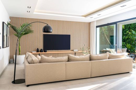 In het hart van Marbella staat deze villa als een bewijs van luxe leven, zorgvuldig vervaardigd in 2020 en onlangs bijgewerkt om de weelde te verhogen. Deze vrijstaande villa, verspreid over een perceel van 1002 m², biedt een oase van verfijning met een bebouwde oppervlakte van 606 m². Met vijf luxueuze slaapkamers, vijf badkamers en twee gastentoiletten, verdeeld over drie prachtige verdiepingen, belichaamt deze residentie comfort en elegantie. Het boeiende dakterras voegt een extra laagje allure toe. Binnenin ontmoeten hoogwaardige materialen en hoogwaardige Miele-apparatuur elkaar, waardoor een culinair meesterwerk ontstaat in de goed uitgeruste keuken. Opvallende voorzieningen zijn onder meer een wijnkelder, een bioscoopzaal, een sauna, een stoomdouche en een ultramoderne fitnessruimte. Voor liefhebbers van duurzaamheid voegt het potentieel om zonnepanelen te installeren die tot 60% van de energiebehoefte van de villa dekken een groen tintje toe aan dit luxe toevluchtsoord.