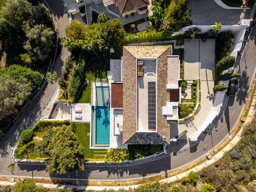Vanaf de hoofdingang toont de woning een duidelijke voorliefde voor eigentijdse architectuur, met een dubbelhoge entree en een grote deur die de kwaliteit van het interieur aankondigt. Bij het binnenkomen, opent zich een ruime ontvangstruimte met zeer hoge plafonds en grote ramen die het uitzicht op de Middellandse Zee en de natuurlijke omgeving integreren in het dagelijks leven.