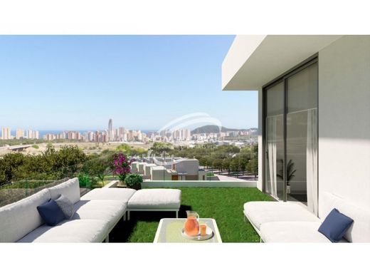 Villa's met 3 slaapkamers en 3 badkamers, open keuken met zithoek, terras met prachtig uitzicht over Benidorm, privetuin met zwembad en parkeerplaats.