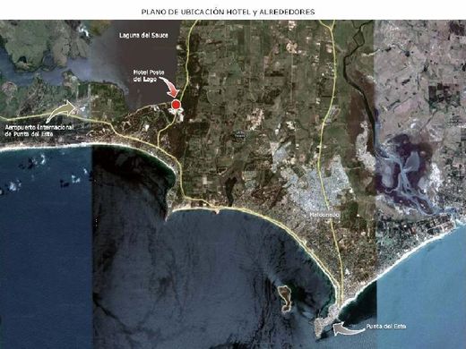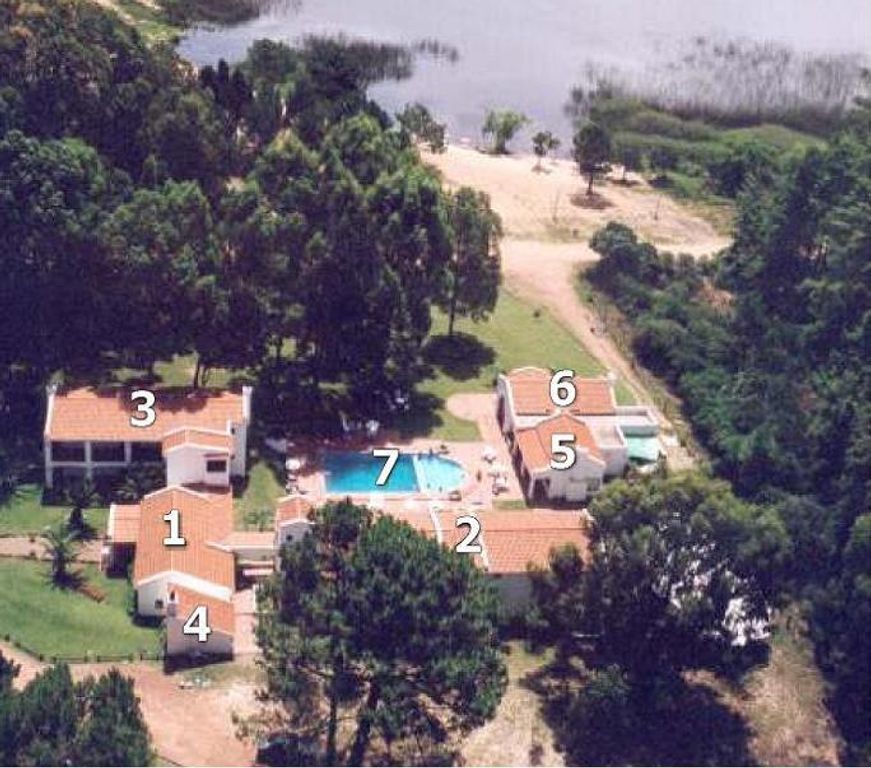 PUNTA DEL LAGO SPORTCOMPLEX HOTEL Gebouwd in 1992, heeft vandaag een bebouwde oppervlakte van ongeveer 1800 m2, ingelijst in 7 hectare volledig bebost land. - Gelegen in het Laguna del Sauce-gebied, grenst het departement Maldonado (Uruguay) tot het OOSTEN met nationale route nr. 12, naar het NOORDEN met het gemeentelijk arboretum en naar het WESTEN met een departementale weg. - Alle kamers hebben uitzicht op de Laguna del Sauce. De afstand tot de stranden van de Atlantische kust is 3 kilometer en vijftien kilometer van ons hoofdresort, Punta del Este.In het hoofdgebouw heeft het hotel 24 kamers in twee vleugels, één met 14 kamers en de andere met 10, alle van hen uitgerust met eigen badkamer, kleurentelevisie, IDD telefoon, minibar, plafondventilator en centrale verwarming. Twee ervan (suites) hebben ook een grotere ruimte, een houtkachel en een jacuzzi. Onder de serviceruimtes zijn: Receptie, Boiler Room, Restaurant voor 60 personen met houtkachel en grote volledig uitgeruste keuken, Video Room, ook met houtkachel, Zwembad met airconditioning en een tent voor meervoudig gebruik. - In de omliggende gebieden heeft het ook een vergaderruimte, een groot sportterrein (professioneel voetbalveld met geautomatiseerd irrigatiesysteem, 5 voetbalvelden, 2 steenstoftennisbanen met verlichting, 3 paddletennisbanen en 1 basketbalveld met verlichting, volleybalveld) , kleedkamers met whirlpools, berging met kamer en badkamer, 2 appartementen voor personeel, wasruimte met 3 wasmachines en 2 drogers, en een cabine met 2 slaapkamers, badkamer, keuken en volledig uitgeruste woonkamer voor 6 personen. FACILITEITEN DETAIL 22 kamers uitgerust met: sommier-bedden (1 ½ en 2 plaatsen), kleurentelevisie met satellietsignaal, videocircuit en centrale verwarming. Nog 2 ruime suites met dezelfde uitrusting en ook een open haard en jacuzzi. Cabine met 2 slaapkamers, woonkamer, keuken en badkamer, ingericht voor 6 personen. Ontvangst en administratie uitgerust met een 6-lijn 32 interne telefooncentrale, fax, computer aangesloten op de telefooncentrale om oproepen te regelen, decodering voor ontvangst van satellietsignalen. Restaurant met houtkachel en volledig ingerichte keuken met 4 koelkasten en 3 diepvriezers. Speel- en videokamer met open haard, pooltafel, 29-inch kleurentelevisie, bar en badkamers. Conferentieruimte met bar, keuken en berging. Sportruimte met kleedkamers (mannen en vrouwen) met hydromassage, en badkamers met 10 douches. professioneel voetbalveld (104 X 66 meter), met natuurgras en automatisch computerberegeningssysteem. Voetbalveld 5 (40 X 20 meter), met automatisch irrigatiesysteem, 2 tennisbanen in steenpoeder, met verlichtingssysteem. 3 paddle-tennisbanen en 1 basketbalveld, met verlichting. Volleybal veld. "Zwembad met waterverwarmingssysteem, met een loyota-vloeromgeving van 1.200 meter. Machinekamer met 1.500 liter boiler voor verwarming en warm water. Magazijn en werkplaats met 120 m2 badkamer en berging voor schoonmaakservice. Woningen voor personeel met 2 slaapkamers, badkamer en keuken. Wasruimte met 3 wasmachines, 2 drogers en 1 mangel. 2 externe grills. 294 m2 tent met loyota vloer. Drinkwaterput 55 meter diep. Waterinlaat 2 ½ "in kamers en hotelfaciliteiten. 2 " watertoevoer in kleedkamers. 100 kilowatt generator. Binnenwegen en 2.000 m2 parkeerplaats. Aangelegd met in totaal 1.200 bomen.
