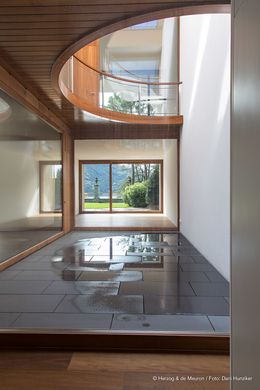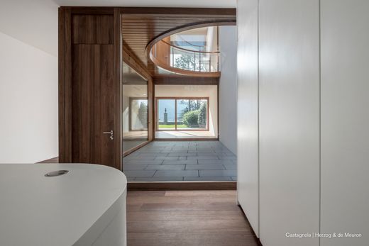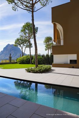 LOCATIE Het wooncomplex "Archi di Luce", ontworpen door de Zwitserse architecten Herzog & de Meuron, is gelegen in een prachtige stad Lugano (Kanton Ticino, Zwitserland) op het grondgebied van het historische Villa Favorita Park dat 800 meter aan het meer beslaat en een totale oppervlakte heeft. van ongeveer 40.000 m2. Het complex beslaat een oppervlakte van ca. 6000 m2 en bestaat uit 8 prestigieuze villa's (van 671 m2 tot 1.314 m2), genesteld tussen de weelderige mediterrane vegetatie van het park met palmen, magnolia's, camelia's, ceders, cipressen en dennen. Het mediterrane klimaat en de rustige, afgelegen omgeving maken het park een ideale en droomlocatie. De unieke locatie biedt de mogelijkheid om te wonen in het historische park Villa Favorita met een prachtig panoramisch uitzicht van 220 ° over het meer, dat zich uitstrekt van oost naar west. Lugano is gunstig gelegen in het centrum van Europa: slechts 75 km van Milaan en 200 km van Zürich, en slechts 20 minuten met de taxi van de luchthaven Lugano-Agno. ARCHITECTUUR & ONTWERP De Archi di Luce is een eigentijdse architectonische structuur met typische kenmerken van historische gevels uit de romantiek en het classicisme. De architectuur van de villa's wordt gekenmerkt door de halfronde vormen die in de gebouwen zijn uitgehouwen, waardoor de verfijnde elegantie van de locatie wordt versterkt.Het gebruik van cirkels, bogen en gewelven als een essentieel hulpmiddel voor het definiëren van de woonruimtes, laat licht en lucht in de woningen, die kleine interne patio's creëren die een open, maar ook privéruimte bieden, waardoor men vanaf elke positie kan genieten van het uitzicht op het meer. Er zijn tuinen aan de voor- en achterkant van de villa's en de groene terrassen bieden de ideale plek om te zonnebaden. De materialen zijn gekozen op basis van zowel functionele als esthetische criteria: enerzijds garanderen ze stevigheid en duurzaamheid, en anderzijds helpen ze warmte te creëren en harmonie te creëren met de aangrenzende historische gebouwen en de omliggende omgeving door de warme kleuren van de wandbekleding en buitenbestrating. De villa's zijn gericht op veeleisende individuen die privacy, discretie en veiligheid waarderen en op zoek zijn naar een high-end pand met veel open ruimte. INDELING De villa's zijn verdeeld over minimaal drie niveaus en sommige hebben ook een studio op de bovenste verdieping. Ruime woon- en eetgedeeltes op de begane grond bieden uitzicht en toegang tot de tuinen op het zuiden en, indien van toepassing, tot het zwembad. Het adembenemende uitzicht op het meer wordt omlijst door hoge pijnbomen, terwijl kleinere bomen en struiken in elke tuin een micro-omgeving creëren die de privacy van elke woning verbetert. Een trap leidt door het midden van elke villa en verbindt alle niveaus van de straat met de privétuin. Dit biedt een indrukwekkend visueel continuüm tussen de woonruimtes op de verschillende niveaus, die een gevoel van beweging door de hele villa overbrengen, vergelijkbaar met het gevoel een berg af te lopen en het meer beneden te bewonderen. Ondanks het feit dat deze huizen compact zijn qua volume en een gemeenschappelijk architectonisch ontwerp delen, behouden ze toch hun individuele karakter omdat ze zijn ontworpen als acht individuele woningen, die elk een hoge mate van rust en privacy bieden.