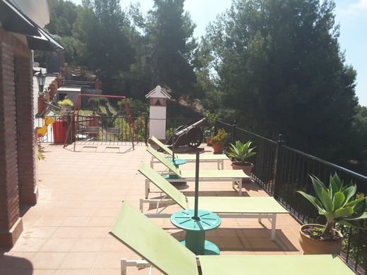Mooie vrijstaande villa van 420 m2 in een moderne rustieke stijl, in een zeer rustige omgeving nabij de Sierras de Tejeda, het natuurpark Almijara en Alhama, en Los Cahorros de Rio Chillar, met prachtig uitzicht op de zee en de bergen.