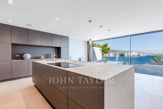We offer this impressive villa with more than 655 m2 of the constructed area that is located on the seafront and allows direct access to the sea. The property has been built on a plot of 1321 m2 and consists of three floors connected by stairs and an elevator. High-quality materials such as wood and natural stone have been used. It is distributed in a spacious and bright living room with a dining room and access to the terrace with a fantastic outdoor space, chillout area, summer kitchen, garden, and the beautiful infinity pool. A fully equipped luxury kitchen, a toilet, plus another guest toilet, laundry room, and pantry. Then the 6 bedrooms, each with its own bathroom and dressing room. The basement includes a gym, a games room, and storage rooms.