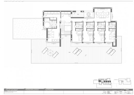Villa la Cala, a property with enormous dimensions, situated on a plot of 2,493sqm, in the exclusive Jazmines residential area at the Cumbre del Sol urbanization, an area with access restricted solely to property owners, which houses many luxury properties.~~Villa la Cala is distributed over three levels, fruit of a unique and exclusive design, with spacious, open and sunny rooms, all facing towards the Mediterranean Sea, making the most of the fabulous views.~~The access to the house is on the upper floor, where 5 of the total of 6 bedrooms of the house are situated. The main bedroom comprises a spacious walk-in wardrobe and an en-suite bathroom with a shower and a bath with sea views. The other 4 bedrooms on this floor also have their own en-suite shower rooms and wardrobes. All the bedrooms have direct access to the terrace and share a communal TV room.~~The steps guide us down to the main floor of the house, the daytime area, with a spacious living room, a kitchen with an island, a storage room, a laundry room, another bedroom with en-suite bathroom, a guest toilet and parking for 3 vehicles. In addition, there is a large outdoor terrace to relax on and enjoy the infinity pool with 60sqm of water surface, plus a spacious veranda with an outdoor dining area and relaxation area where you can continue enjoying the uninterrupted sea views.~~This fantastic property also contains an open plan area of over 100sqm, situated on the lowest floor, which can be finished off depending on the requirements of the purchaser.