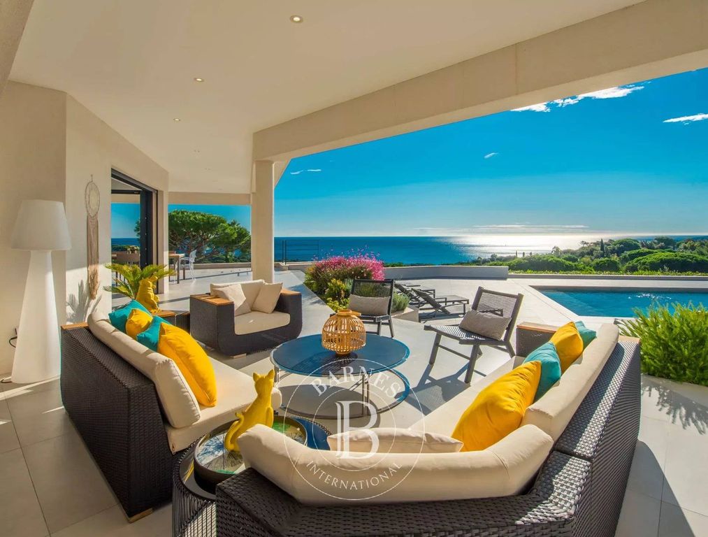 Located in a quiet and secure area in Sainte-Maxime, new contemporary villa of 325 sqm (3498 sq. ft.) offering a panoramic sea view.