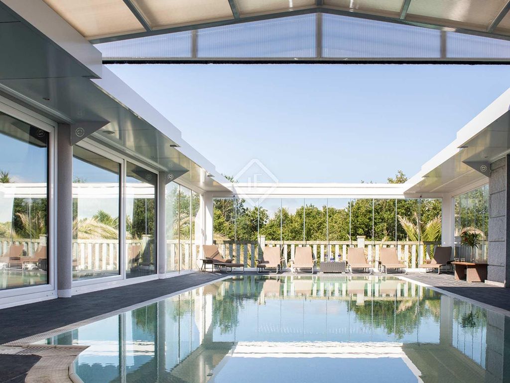 From the living room, large sliding glass doors give direct access to a beautiful indoor swimming pool. The swimming pool is equipped with a motorized sunroof for the summer months.