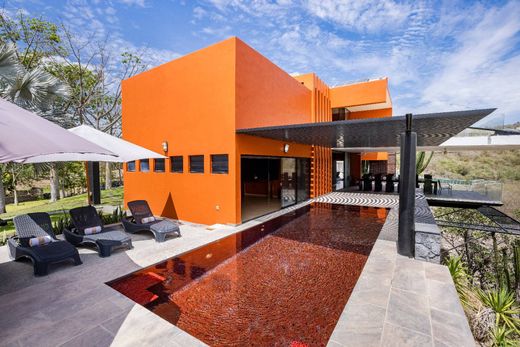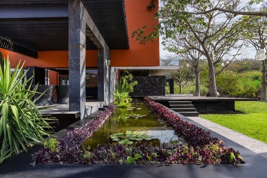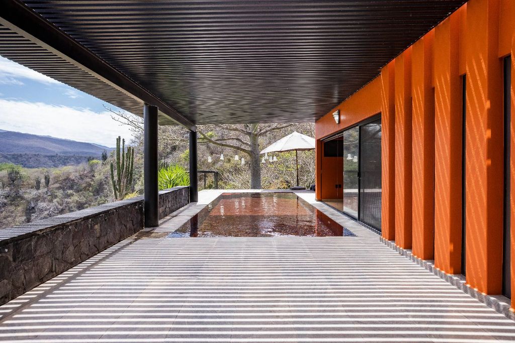 Located between rivers and mountains is this spectacular property, the work of the famous Mexican architect Sixto Langarica Dávila, recreating a bird, ready to dominate the skies and peaks of the region. With a unique and avant-garde design, dominating the landscape with its bright colors, “Casa Ave del Risco” emerges, located more than 65 meters above the cliff; inviting us to rest on its terraces, and to explore the gardens accompanied by the sound of the birds and the relaxing sound of the water coming from the river, the stream and various waterfalls that surround the town. With a self-sustainable and ecological inclination, Casa Ave del Risco, has a stream from a nearby spring, as an inexhaustible source of water for its own enjoyment and use, which winds through the property creating various pools or natural pools, waterfalls and a beautiful waterfall of more than 15 meters high, all this in an ideal set for rest, recreation and sports. Multiple and fresh terraces, with unparalleled panoramic views intertwine with the interior spaces of pure lines and high windows of the house, highlighting its comfortable rooms, connected by illuminated corridors and large common areas, thus creating the ideal spaces to enjoy every corner surrounded by nature and comfort. Framed by the incomparable beauty of the property's surroundings, its soft pool stands out that invites rest and relaxation, always accompanied by the subtle breeze from the mountains and the delicate surrounding gardens. As a whole, Casa Ave del Risco offers a totally symbiotic space, which manages to perfectly connect a modern and comfortable lifestyle with the diverse, serene and also vigorous natural environment that surrounds it, crowned with a world-class architectural artistic work.