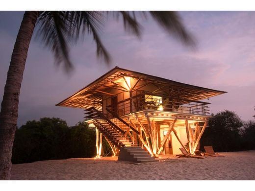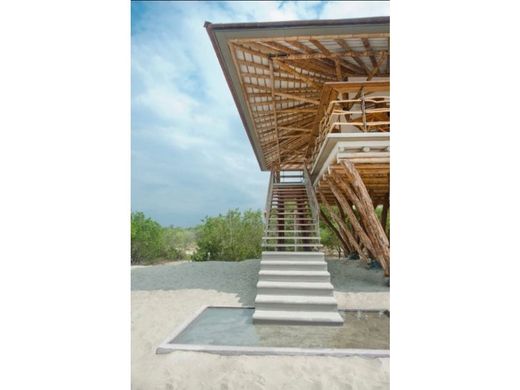 Spectacular 15 hectare lot with 250 linear meters of beach front, located on the beachfront in the area of Mingueo - Dibulla - Punta de los Remedios, Guajira. ABOUT THE LOT: Very few lots have so many meters of front (250 linear meters) in relation to few meters of depth (570 linear meters). The above makes this property a unique opportunity that should not be missed. ABOUT THE HOUSE: Impressive house designed by the famous architect specialized in guadua Simón Vélez. The construction, of 50 m2 consists of two floors. On the first floor there is an open room where the floor is the beach itself and a small kitchen. On the second floor there is the only room with its bathroom which has an outdoor shower, a terrace with incredible panoramic view of the Caribbean Sea and a jacuzzi. English: Update: In December 2023, the house was remodeled by expanding the kitchen, building a full bathroom on the first floor, the storage room was remodeled, and general maintenance was done on all the bamboo in the house. OTHER IMPORTANT DATA: Water: Although the lot has two water sources, it is taken from the local aqueduct. Electricity: Both the main house and the support staff's house have a solar plant to supplement the electric light that is projected to pass near the lot before the end of 2021. The property is reached by paved road with two populated centers a few minutes away by car; then you enter by road to reach the house. It has a coconut plantation on part of the beach front.