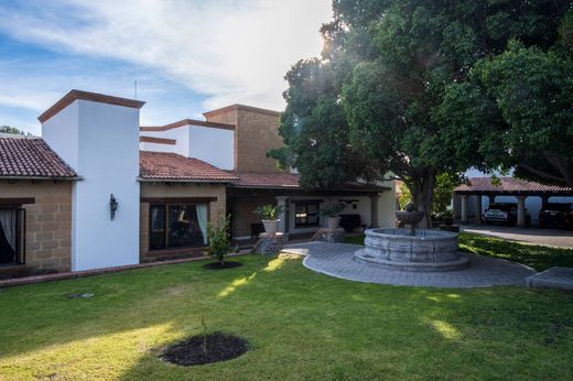Casa de los Renos is a cozy property located in one of the most beautiful areas of Juriquilla. The main house is practically on one floor, although it has some steps that emphasize the topography of the place. The house has 3 bedrooms, all with bathrooms and the main one with a large dressing room. It has a TV room and a study, this being the only space located on the floor that could become a fourth room. The social areas are totally oriented to the outside of the house; The living room and dining room open directly onto the terrace where you can enjoy the large garden that is topped with a large tree-lined area. There is a pool with a jacuzzi next to the barbecue area, access to the wine cellar / bar of more than 40 m2 is through the garden. The property has a bungalow for visits.