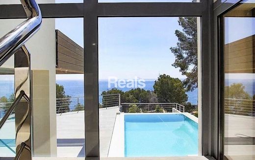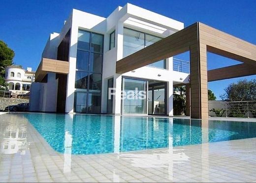 A beautiful, modern-style villa on the coast in Benissa, one of the most beautiful locations on the Costa Blanca, with uninterrupted sea views, is available for purchase at a reduced price from €1,890,000 to €1,650,000. The villa comprises 4 bedrooms, 5 bathrooms, a living room with a dining area, and an open-plan kitchen. Heating, a winter garden, a garage, an elevator, and air conditioning are available 400 meters from the sea. Residents have access to an infinity pool, an easy-to-maintain garden, a barbecue, and spacious terraces. Built energy-efficiently, nestled among pine and palm trees, the villa boasts a modern design and excellent spatial planning, ensuring residents' comfort and a wonderful aesthetic experience. The entire house was built with high-quality materials by a renowned developer. This is an ideal place to enjoy Mediterranean life on the Costa Blanca. Alicante Airport is 65 km away. Contact us for more details.