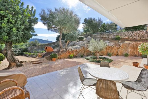 This wonderful and bright ground floor flat of very good qualities, with private garden and community pool is located in the small and private community in picturesque Calvia Village.~ ~ The house is situated on the ground floor and consists of approximately 125 m2 built surface, plus 14m2 of a porch and 413m2 of a plot.~ ~ Distributed into one floor, it has a comfortable entrance hall that leads us to an impeccable and fully equipped kitchen and utility room with access to the rear terrace. On the left side it is connected with a spacious and cozy living room from which you can access the private and pleasant garden, offering wonderful views to the mountains and great privacy. The main hall also leads to the three double bedrooms, of a good size, and two full bathrooms; one with a shower and the other with a bathtub, one of them en suite, you can also access the terrace from the master bedroom.~ ~ The apartment features a fantastic maintenance and good construction qualities. Equipped with hot / cold pumps in the house, aluminum / double glazing insulation, electric awning and porcelain-effect ceramic floors.~ ~ The community is located in a privileged location, due to the tranquility, since there are only two blocks with 8 apartments in total. A large swimming pool and a well maintained garden area for the enjoyment of this small residential community. Highlight the privacy of the apartment due to the location.~ ~ Two underground parking spaces with access from the outside and a large storage room also belong to the property.~ ~ The house is located a few minutes from the center of town, where there are all kinds of daily services such as; small supermarkets, pharmacy, medical center, bars and restaurants, banks, Town Hall, hairdresser, car workshop, market for organic products every Monday, etc.~ ~ An increasingly privileged enclave, ideal for living in a healthy environment, with a very good and fast connection to the city of Palma (15 min by car), beaches (10 min), marinas (10 min by car).
