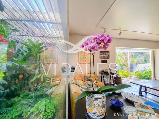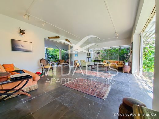 Beautiful house designed by architects Sergio Moreira and Marcos Vasconcelos, with an excellent floor plan, favoring large spaces and allowing good air circulation and plenty of light. On the first floor: A beautiful landscaped entrance, living room, large internal veranda, spectacular dining room, toilet, a spacious patio with other living rooms, garden area, kitchen very spacious with a great pantry and laundry room, large vestibule with a beautiful staircase to access the second floor of the house Second Floor: Spacious hall, six bedrooms, the main master suite measuring 32 mts2 with dressing room and beautiful bathroom. All bedrooms are very spacious and bright. Three social bathrooms that allow for three more suites. The large deck of the house is wonderful, with a beautiful view of the Lagoon, swimming pool, vegetable garden, barbecue, with garden and fruit trees, bar and patio. It has two dependencies for employees. Space for three cars.