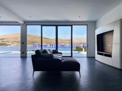 Villa 2 with an area of 349 m2 is located on a plot of land of 700 m2, first row to the sea. It extends over two floors and offers a beautiful view of the sea. Ground floor consists of entrance hall, open concept kitchen with kitchen island and dining room, spacious living room, two bedrooms with its own bathrooms, guest toilet and a pantry. One of bedrooms has its own dressing room and small living room. Access to open terrace with heated pool is possible through glass doors from living and dining room. First floor has three bedrooms with en suite bathrooms, and one of bedrooms has a dressing room and direct exit to shared terrace with Jacuzzi and a wonderful panoramic view of the sea. The property has a garage for two cars and one additional uncovered parking space.