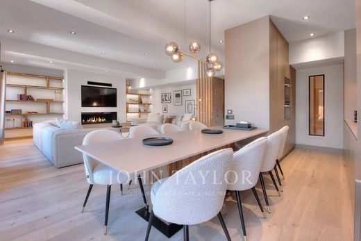 Duplex apartment fully furnished and equipped with a total area of about 107 m2 benefiting from an exceptional location in the heart of the village of Megève, near the shops and the departure of the Chamois cable car. Located on the 1st floor with elevator, it offers a modern and warm interior including a fully equipped kitchen open onto a living room with fireplace, balcony, 3 bedrooms en suite, a guest toilet, a ski room.