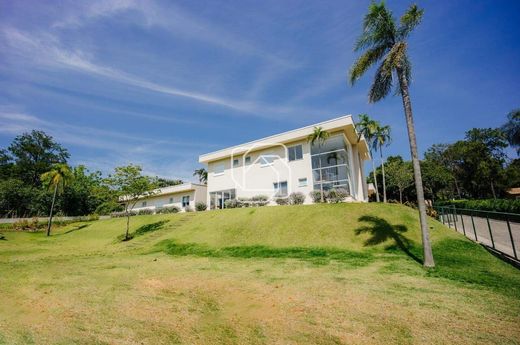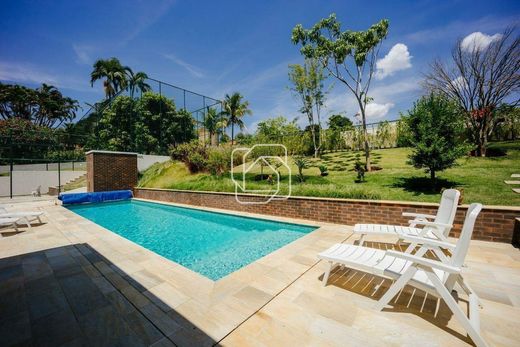Farm for sale in Condomínio Lagos de Shanadu in Indaiatuba. With 829 m² of built area on a plot of 5,500 m² Beautiful townhouse that has a main house and a guest house with 02 suites, with spacious open concept spaces! The main house includes 5 suites, 3 suites with closet, entrance hall with wooden pivoting door, living room with 2 terraces and kitchen with pantry. As well as a home office, private TV room and family room. It also has a toilet, laundry and service area with independent access. It offers complete accommodation for employees (1 suite with closet, large living room, 2 rooms and kitchen). The outdoor area contains a gourmet space with a barbecue and pizza oven, a heated pool, a storage room and an external bathroom. In addition to magnificent landscaping around the entire property, which includes an orchard and vegetable garden. Garage with covered space for up to 2 vehicles. It will be sold with air conditioning installed, custom furniture in all rooms (main and guest house), artesian well and photovoltaic energy. — This country house could be yours! All you have to do is fill out the form to meet her in person. LAGOS DE SHANADU - INDAIATUBA The Lagos de Shanadu Condominium is a cozy place surrounded by greenery. It has beautiful lakes, tree-lined streets, as well as 24-hour concierge and security. Great location, with easy access to the SP-075 highway and Polo Shopping.