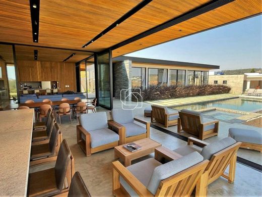 House for sale in the Terras de São José II Condominium in Itu/SP, with 489.68 m² of built area on a 2,186.54 m² plot of land. Privileged location in the upper part of the condominium, with views of the lake and green area! This magnificent house has 6 suites, 1 of which is a master suite, a large living room with 2 ambiances and an open kitchen with a pantry for quick meals. It also has a guest bathroom and a service area with independent access. The outdoor area includes a gourmet space with a barbecue, an infinity pool and a beach tennis court. In addition to beautiful landscaping around the entire property. — Garage with space for up to 9 cars, 3 of which are covered. It will be sold fully decorated and with fitted cabinets in the kitchen, gourmet space and bathrooms. The Terras de São José II Condominium is one of the best luxury condominiums in the interior of São Paulo. It is located on the Castelo Branco Highway, 100 km from the capital. In addition to the advantages of variety and quality in infrastructure, Terras II is also known for its precise cost system. Where residents only pay for the infrastructure they use. Fill out the form to schedule your visit or speak to our condominium specialist. The best properties in the interior of SP, in the most complete real estate agency in Itu.