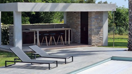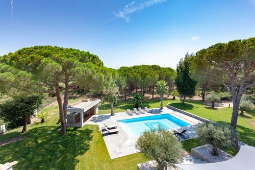 Magnificent Villa five minutes from the mythical beach of Pampelonne l'Escalet, 250 m2 in a beautiful 8000m2 park, includes 5 en-suite bedrooms with their bathrooms or showers and toilets, an American kitchen, a huge living room with beautiful volumes which overlook a large covered or uncovered terrace and the swimming pool with Pool house. Air conditioning in all rooms, heated swimming pool, WIFI, safe, parking, gas BBQ. Price June and September: 15,000 Euros / week including 5 hours of cleaning / week Price July-August: 24,000 Euros / week including 5 hours of cleaning / week