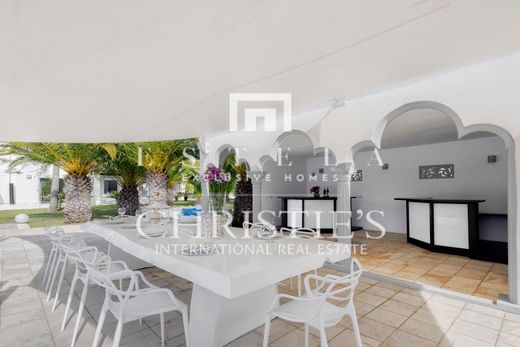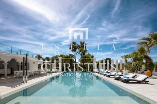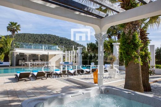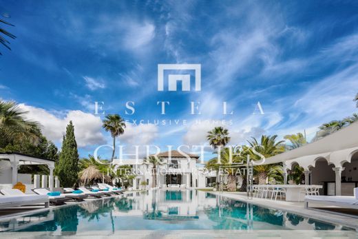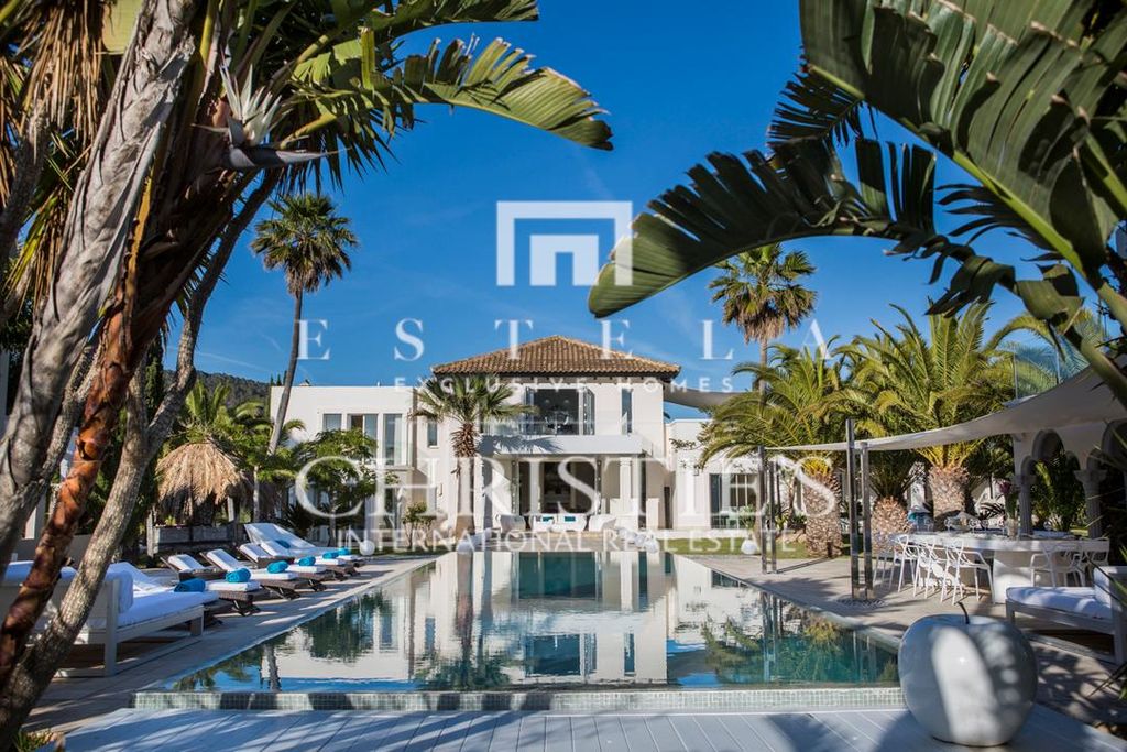 Beautiful , elegant mansion in Cala Jondal with great sea views. Impressive villa of 475 m² built on two floors on a plot of 22.500 m². It is located in a quiet area in Cala Jondal and disposes of 4 bedrooms with 4 en suite bathrooms, a spectacular living room with access to the swimming pool, a separate dining room, a fully equipped kitchen and a gym. The furniture of this house is very special, luxurious and original. The outdoor space includes a beautiful swimming pool area, a large garden and a tennis court. The property disposes of air conditioning, under floor heating, marble floors and alarm system. From the first floor you can enjoy spectacular views of the sea and to the beautiful mountains and the countryside. An elegant estate with a lot of Ibiza feeling situated in one of the best areas of the island, near some of the best beach restaurants.