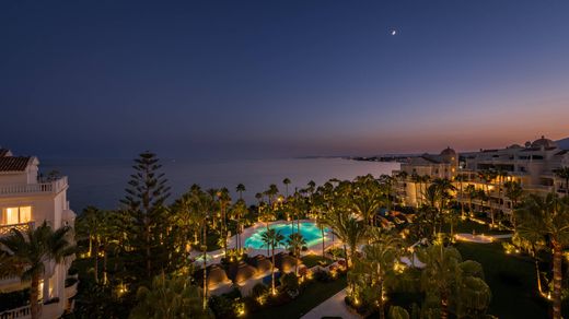 Fully renovated to the highest standards, 5-bedroom duplex penthouse located in the 5* complex on the New Golden Mile. Frontline beach with beautiful sea views and south/west facing. Direct access to the beach and walking distance to several beach restaurants and bars. Paseo ready towards Estepona town center and port.