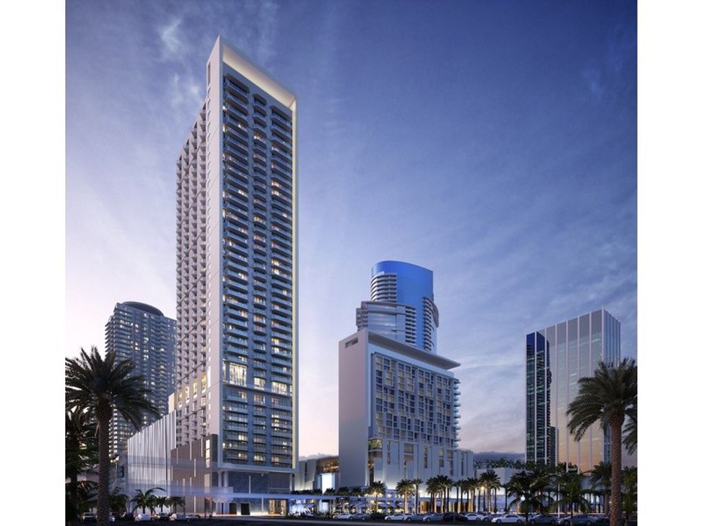 This amazing 734 SF penthouse is composed of one bedroom and a bathroom. It includes a balcony, as well a parking space for all residents and relatives. the sky-scraper where the penthouse is located offers a vast option of premium services, such as a flourishing landscaping surrounding a resort-style swimming pool located at the top of building facing the entire city, an indoor relaxing spa with sauna and jacuzzi, and a luxury concierge service offering the most exclusive experiences and tailor-made services. Downtown Miami overlooks Biscayne Bay, creating the renowned and affable skyline. an area in continuous development, and during the daytime hours it is very busy: with people going to work, those indulging in shopping, culinary activities, shows and sporting events, such as those found in the large FTX arena, and much more. The area has the largest walkway in the city, and is teeming with unforgettable experiences, such as Bayfront Park, considered a perfect place for families to relax on green lawns, being wafted by the ocean breeze. Adjacent is the Bayside Marketplace, an open-air shopping mall, decidedly out of the ordinary, that faces directly onto the sea, and nearby you can enjoy a decidedly unforgettable view from the Miami Ferris wheel skyviews The interior of the unit holds a terrific panoramic view over the whole city, benefiting from a revitalizing natural lighting. The dining area, designed to create a pleasant culinary space thanks to its gourmet kitchen with its contemporary Italian cabinetry and contemporary counters. The fully tiled bathroom embraces a high-quality design with its quartz counter top and customized vanity cabinets.