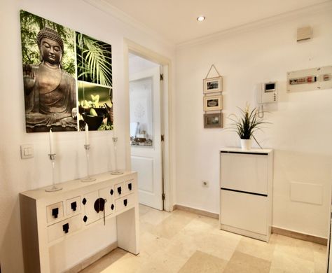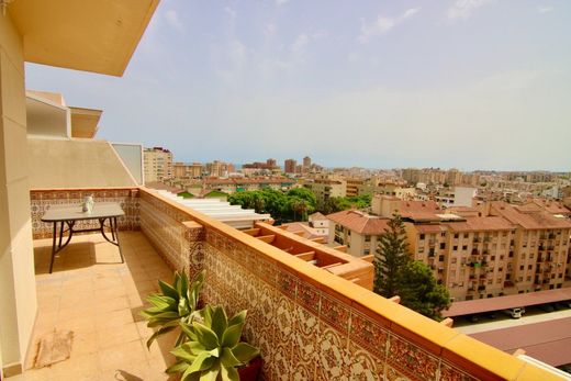 DUPLEX PENTHOUSE WITH FOUR BEDROOMS, SOLARIUM AND POOL.~ ~ Duplex penthouse with four bedrooms and two bathrooms, in perfect condition located in the center of Fuengirola, close to the beach (550m), Recinto Ferial (250m), the port of Fuengirola (900m), hospitals (500m), shops, schools, ... With private parking included, community pool and panoramic views of the mountains, the sea and the city.~ When you enter the penthouse, on the first floor you can find an entrance hall with a separate fitted kitchen and laundry room. A spacious living room that was integrated with the terrace to give more space, an independent terrace with access to a double bedroom with a built-in wardrobe and another single bedroom with a shared bathroom with a hydromassage cabin.~ ~ In the upper part it is divided into two double bedrooms with access to the terrace and fitted wardrobes, with a bathroom with a bathtub between the two. Here is the large solarium terrace that surrounds part of the penthouse to enjoy the magnificent views of all of Fuengirola with a good barbecue.~ ~ The penthouse has air conditioning installed in all bedrooms and living room. The private parking inside the building is located on the large -1 floor and there is also a community pool that is surrounded by a garden, perfect for relaxing and spending the whole day in the pool.~ It is a very safe community, with installed cameras and intercom.~ Do not miss the opportunity.