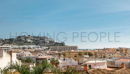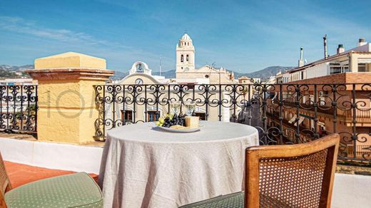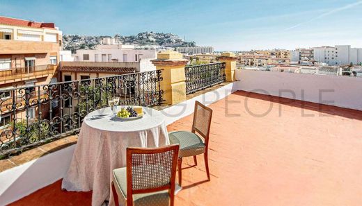 Baroque-style building located in Almuñécar's Plaza de la Constitución with a sand-coloured and crimson red façade.