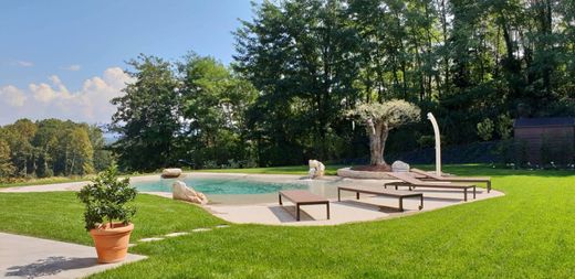 Prestigious single villa with swimming pool in a unique panoramic position with a 180 ° view of the vineyards of Franciacorta, Montisola and Lake Iseo.