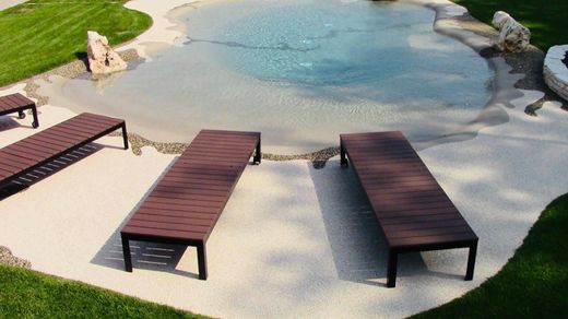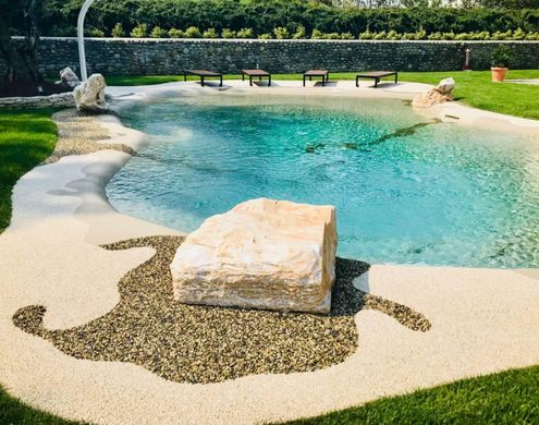 - in harmony with the residential context there is a biodesign swimming pool with shower: the bottom and walls have a sand effect with the water that is absorbed and