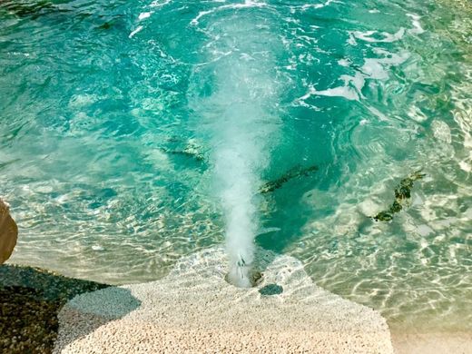 counter-current swimming, hydromassage + foot massage + water games + cervical massage and sound box for radio and CD inserted in the rock.