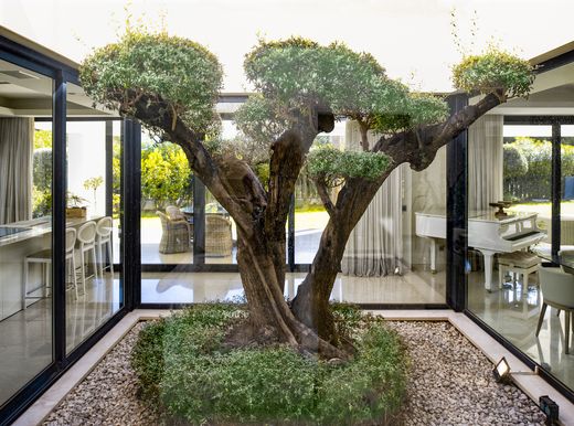 This Villa offers 5 bedrooms with en-suite bathrooms, a cinema room, a gym, sauna and a 3 car garage. As you enter the villa you are greeted by an olive tree, a spacious salon and an open plan kitchen. On the first level you will find 3 bedrooms in total including the master. The gym and cinema room along with the a guest/staff bedroom are found in the basement. The fifth bedroom is used as an office on the entry level. There is air conditioning and underfloor heating through out the villa.