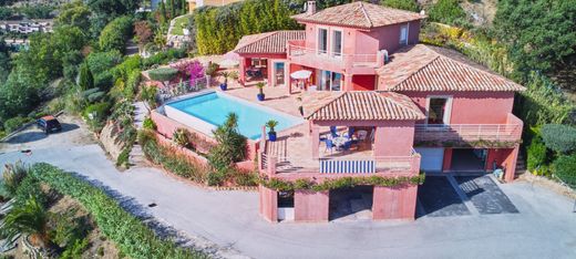 Sale 7 room villa with superb sea views, on approximately 2990m2 of land, in Sainte Maxime. Located on the heights of the Golf de Sainte-Maxime, discover this magnificent architect-designed house, of approximately 270m2, enjoying a 180o view from the Gulf of Saint-Tropez to the mountains of the South of the Alps. Access to the golf course on foot. Favorite for this property benefiting from a dominant position ensuring sumptuous views from all rooms, optimal exposure (South), while benefiting from absolute calm. On the ground floor, you will find a double reception room of approximately 90 m2 with open fitted and equipped kitchen, a guest toilet and in the sleeping area two large bedrooms giving access to terraces, a bathroom and a dressing room. Upstairs, two large bedrooms with terraces and private bathrooms and a toilet. All surrounded by large covered and uncovered terraces and an 11.5mx5m infinity pool with pool house. On the garden level, you will benefit from a 60m2 T2 apartment opening onto a terrace with sea view, a double garage, 2 cellars, a full basement and another 80m2 outbuilding which can be converted into an apartment. Numerous parking spaces. Underfloor heating and reversible air conditioning. Bay windows with pocket. Watering and automatic gate. For any information and visit contact Jonathan Gillard on 06 71 37 41 76 Agence Echappée Bleue Golfe de St Tropez - Rond point de La Foux - 83580 GASSIN