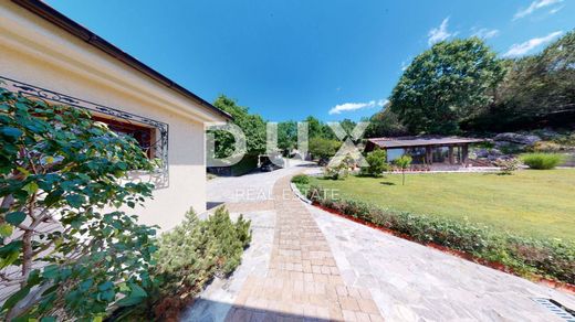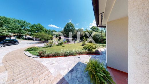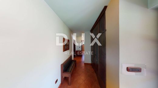 We offer this unique villa with a large garden. In addition to the villa and its accompanying parts, there are about 50 olive trees and the same number of fruit trees on the garden of 8000 m. The complete garden is for construction, so it gives the new owners peace of mind, or it can be used for the construction of new buildings. The villa itself, completely decorated in a rustic style, is enchanting. It consists of a basement, ground floor and first floor. The villa offers several entrance options, but the main one leads us straight to the ground floor, where there is a kitchen with a living room that opens onto a beautiful terrace. Also on the ground floor we have a bathroom, washer/dryer, wardrobe. There is a summer kitchen with a barbecue on the terrace, and there is a garage next to the main entrance. The ground floor has approx. 175m2. The first floor of the villa consists of three bedrooms with two bathrooms, a hallway, and a wardrobe. The square footage of the floor is approx. 100 m2. The basement of the villa is equipped with a billiards room, a tavern, one room, and two additional storage rooms with a total square footage of approx. 130 m2. Underfloor heating is used to heat the entire house. The entire villa is decorated in a combination of brick, stone, wood, which gives it a special charm. A very interesting property and a rarity on the market.
