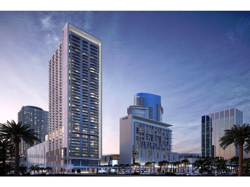 This 979 SF apartment consists of 2 bedroom and 2 bathroom, as well as a parking space and a balcony. The residence in which the unit is located offers an unlimited range of premium amenities, such as a luxurious outdoor pool and sundeck surrounded by lush landscaping overlooking the entire city, an indoor spa with hot tubs and sauna, an extensive fitness center, a dog spa, and more. The property offers concierge service with 24/7 assistance for any need and access to the most sought-after experiences and services the city has to offer. The Downtown Miami neighborhood, overlooking beautiful Biscayne Bay, is an eclectic place, where new and old, business and leisure, mix, and where old skyscrapers from the 1980s mingle with newly built ones to create the city's unmistakable skyline. A great place to visit during weekday daylight hours, when the neighborhood is bustling with activity-from shopping to strolling in beautiful Bayfront Park, or on chaotic Biscayne Boulevard, which separates Downtown from Bayfront Park. This neighborhood is a very special place, with its artistic and architectural beauty, historic buildings and museums, activities and sporting events. In fact, Downtown Miami hosts several major annual events, such as the ING Miami Marathon, or the Miami Book Fair International, which offers participants the opportunity to visit the exclusive Miami Dade College; or the Miami International Film Festival. The interior of the unit enjoys abundant light and breathtaking views, offering a different panoramic perspective of Miami. The dining room, which includes a gourmet kitchen with designer counters, contemporary Italian-style cabinetry and state-of-the-art appliances, creates a comfortable and distinct dining area. The tiled bathroom has a refined taste with its quartz countertop and custom cabinetry.