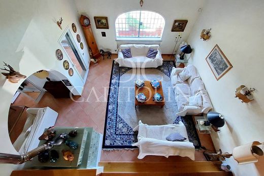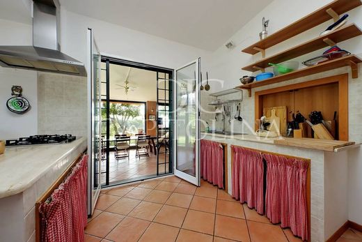 In the enchanting town of Trevignano Romano, located in a panoramic and dominant position, we offer, in the locality of Monte la Guardia, the sale of an exclusive, private and prestigious single-family villa, one of a kind, with a wonderful breathtaking view of Lake Bracciano. The property is immersed in a park of about three hectares of land with an automatic irrigation system, and a splendid swimming pool with shower and patio equipped with barbecue and wood-burning oven. The charming villa is divided internally as follows: on the ground floor there is a large mezzanine lounge with Tyrolean stove, TV room, large kitchen, three bedrooms and three bathrooms, three balconies and a large veranda with wood-burning fireplace; in the basement it has a large hobby room with fireplace, with an area used as a sauna, a bedroom with a bathroom and direct access to the swimming pool, a storage room and a service. The property includes an outbuilding, consisting of two bedrooms, a kitchen and a bathroom, currently used as an apartment for the servants, and a large garage for at least four cars.