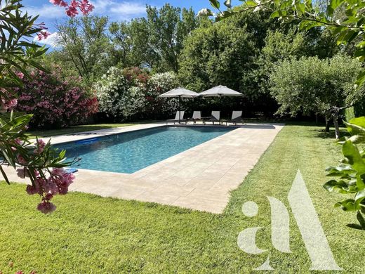 This sumptuous stone Provencal farmhouse dating from 1850 and entirely renovated with taste opens its doors to you for an unforgettable stay in the calm of the Provencal sun. Located in the countryside less than 10 minutes from Saint-Rémy-de-Provence and close to the village of Saint-Etienne-du-Grès, this 19th century building of 400 m2 on 2 levels with 7 bedrooms, 6 bathrooms, 3 lounges is built in the heart of a 1.6 hectare property entirely enclosed. Several terraces shaded by hundred-year-old oaks, olive trees, fruit trees, a small wood and Mediterranean species adorn the swimming pool and its comfortable pool house (real equipped summer kitchen) which will delight your summer days and evenings. A cycle track leads to the village of Saint-Rémy and a tennis club is located 1.5km away, linking Saint-Rémy to Saint-Etienne-du-Grès (cycle and pedestrian).