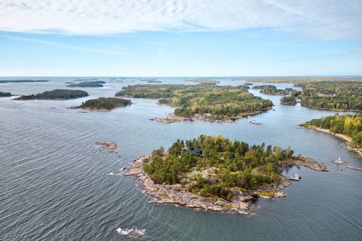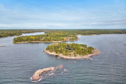 The buildings are designed by architect Joanna Maury; the main house, the guest house and the sauna all have an atmosphere that lends itself to being close to nature, with wonderful little details. The materials used in the interior - granite, glass, oak and rusted Corten steel create a harmonious and luxurious feel throughout the different buildings. The passage from one building to another is made easy with wooden paths made of durable Siberian larch. The large terraces around the buildings offer a quiet place regardless of wind direction. A separate storage building for hobby equipment and supplies and the sturdy jetty where you can even land by helicopter are the perfect addition to this awe-inspiring island property.