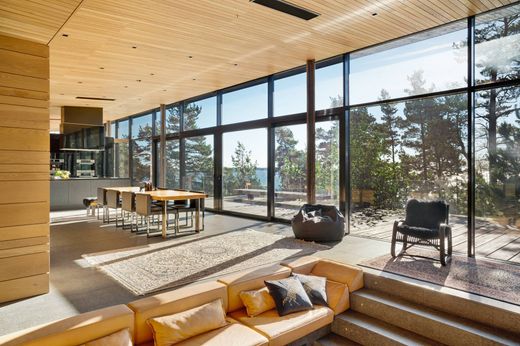 The sun glitters over the open sea, coastal cliffs, small archipelago pines. An architectural masterpiece right next to this breathtakingly beautiful environment. Living with nature while today's technical solutions make life easier. Total peace, horizon, time, and space for your own thoughts. Remmarholmen offers all of this and only 5 minutes away from the mainland.